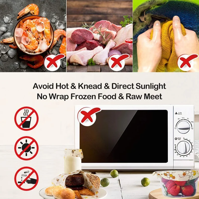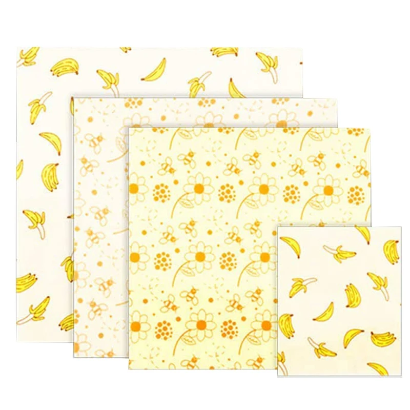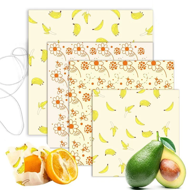 4Pcs Reusable Beeswax Food Wrap Kitchen Organic Sustainable Washable Food Storage Beeswax Wrap for