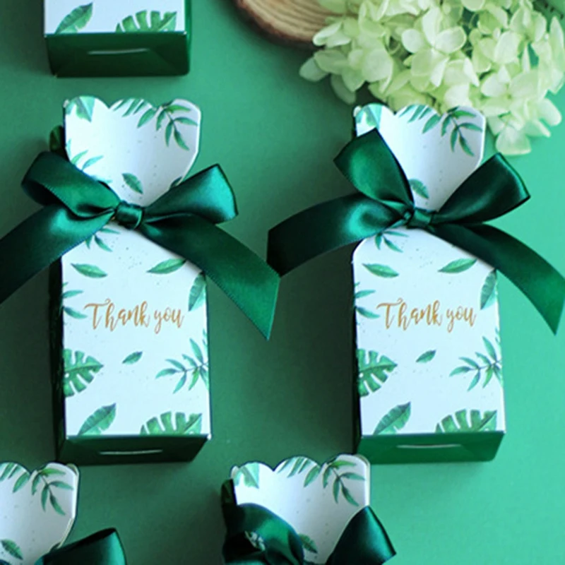 ABSS-50Pcs Green Paper Candy Chocolate Boxes Gift Bag Wedding Gift Box Baby Shower Favors Birthday