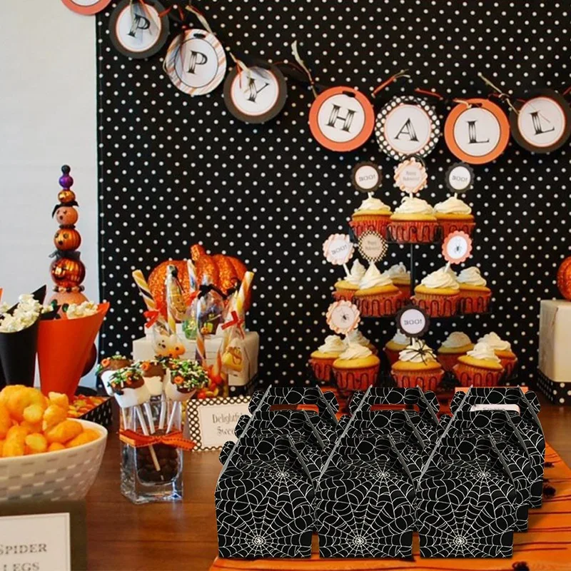 HOT SALE Preparing for Halloween-24 Pcs Halloween Favor Boxes Paper Black Spider Web Gift Bags Halloween Tre
