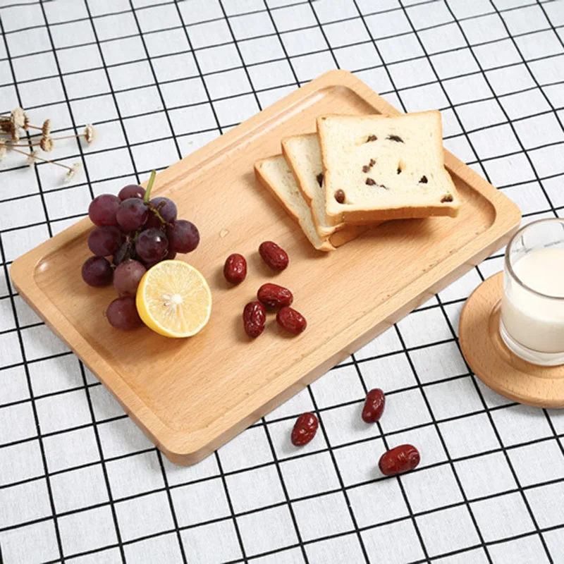 Creative Wooden Tray Solid Wooden Rectangular Plate Cup Tray Cake Fruit Plate Western Food Cup Tray