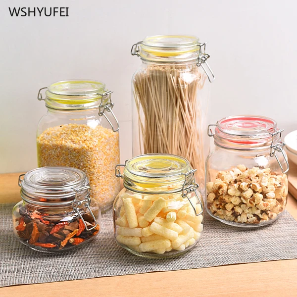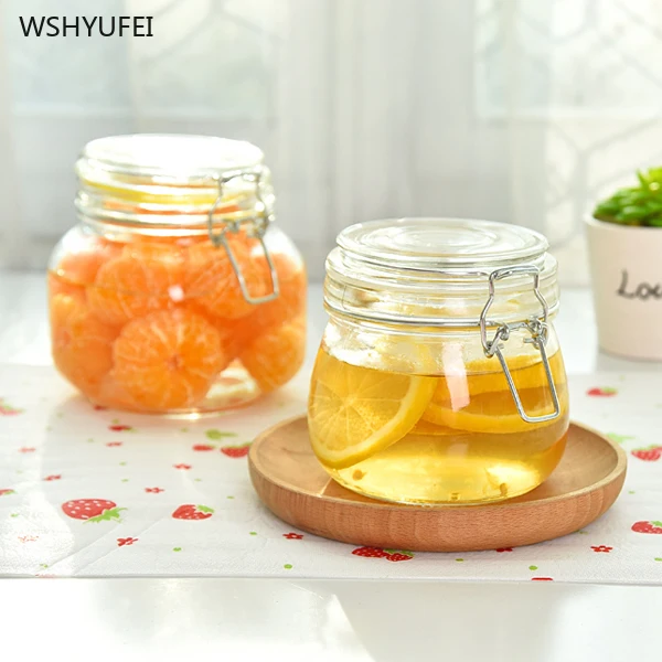 Glass transparent bottle food storage candy biscuit coffee bean tea storage box jar kimchi soaked w