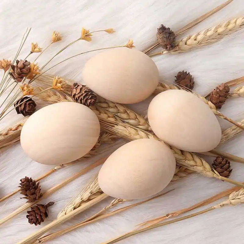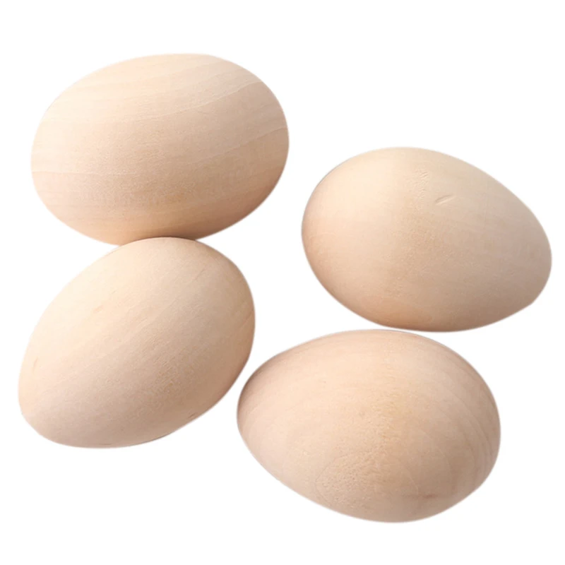 63Mm 12Pc Large Wooden Eggs Shape Diy Unfinished Wood Egg Handmade Bottom Wooden Teething Toys Nurs