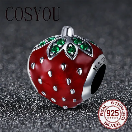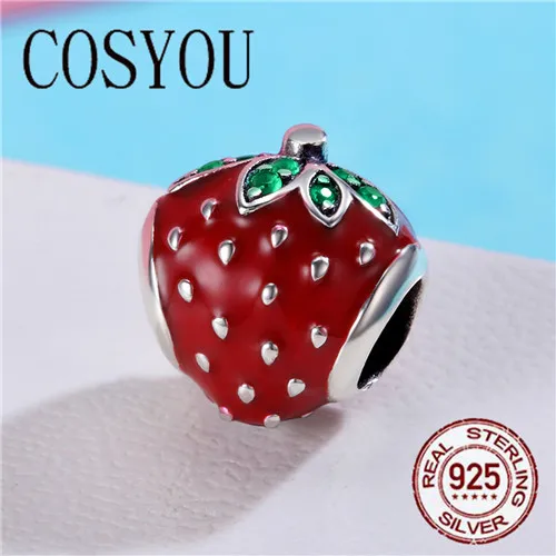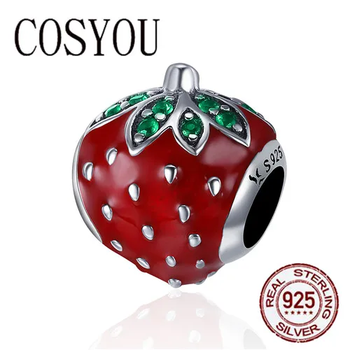 COSYOU Authentic 925 Sterling Silver Sweet Strawberry Red Enamel Charm fit Women Charm Bracelets &